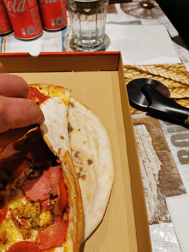 Read moreBuenas medidas covid 19, hice el pedido online y a su hora lo recogi sin ningún retraso. El personal que me atendió bastante amable. Pedimos una pizza familiar al gusto de 5 ingredientes y para nuestro gusto estos brillaban un poco por su ausencia pues podía haber 4 trocitos de cada ingredientes, todo lo demás masa. No es la primera vez que nos pasa, pero si que es cierto que como norma general están muy buenas y bien compuestas. Cuando la pides en promoción bueno, pero cuando pagas 26 euros solo por masa y tomate da mucha rabia. No creo que tengan ningún control de peso de ingredientes, pero deberían...