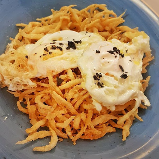 Pero lo que realmente conquista es su cocina. Las croquetas son, sin duda, las mejores que he probado en mucho tiempo: crujientes por fuera, cremosas por dentro y con un sabor que te transporta a la auténtica cocina casera. La carta ofrece platos tradicionales con un toque especial, todos elaborados con ingredientes de calidad y con ese mimo que se nota en cada bocado.