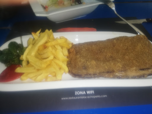Teníamos muchas ganas de probar este restaurante y sin duda, estuvo muy por encima de nuestras expectativas Local agradable, algo ruidoso, pero es un poco también la esencia de este tipo de sitios, respira ese ambiente de "tasca" entiéndase el término, como ese bar de cuando eramos niños y había padres, niños, jóvenes, abuelos, conviviendo en un mismo sitio Destacar la carta amplia de cachopoS y de otras muchas cosas más, aunque lógicamente llamándose la cachoperia, lo recomendable es pedir un cachopo Nosotros teníamos dudas y la camarera nos recomendó más que bien, pedimos medio cachopo con un relleno de setas, que estaba brutal, además reseñar esas patatas fritas desiguales, es decir, caseras, esas que son de verdad y no precovinadas y además una buena reacción de pimientos Quedamos llenos y era la opción de la mitad, tienes la opción del cachopo entero que entre 4,perfecto con algún entretante, o 2 medios para degustar varios sabores Precio super ajustado, he pagado más en restaurantes chinos, comiendo bastante peor Gran eleccion, descubrimiento y repetiremos Además siempre valoro mucho esto... Mi mujer y yo somos los raros que solo Bebemos agua para comer y en más de un sitio nos po en morros a la hora de pedir una jarra o un simple vaso de agua AQUÍ sin problemas y con una amabilidad...