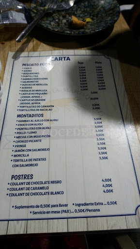 Llegamos sobre las nueve y media de la noche de un sábado y ya sólo quedaban tres mesas, a las diez ya se estaba formando cola para pedir turno. La atención un poco despistada pero para la gente que había fue bastante buena. Una carta sobretodo de pescado y marisco, pero también había montaditos, con opción de poder pedir tapas en la mayoría de lo que se ofrece. Ha sido una buena cena...
