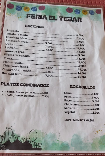 Read moreMenu del Tejar a fecha 17-08-24. No hay mucha variedad pero está todo aceptable. Los chipirones a la plancha , Buenos sin chimichurri.Las patatas bravas demasiado picantes. El flamenquin de los congelados. El cochifrito demasiado frito. El bacalao frito muy rico. La ensalada mixta un poco "pobre". El venao a la plancha muy muy bueno pero algo escaso para ser un pueblo eminentemente de caza de monte. Échale algún filetillo más, hombre!!. En resumen se come y se bebe, pero hay otros sitios en el pueblo donde tienes más variedad. Por cierto cuando pidas la cuenta, pide también un traductor por qué mira la foto y lo entenderás. Sólo códigos y €. Por cierto ni la fecha está bien 19-01-2000. Que tiempos...