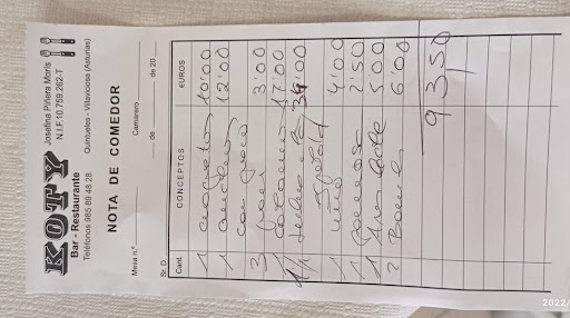 Ha desaparecido el mítico menú del día. Éramos tres, pedimos croquetas de jamón, salpicón de marisco y pescado. Rollo de bonito y bonito al horno. De postre tarta de la abuela y dos arroz con leche. De beber Kas, sidra y agua con dos cafés finales un total de 103 €, teniendo en cuenta que fueron solamente dos segundos y sin vino, si sumamos esa línea el precio se podría disparar a casi 50 € por persona lo que sería caro acorde al espacio.
