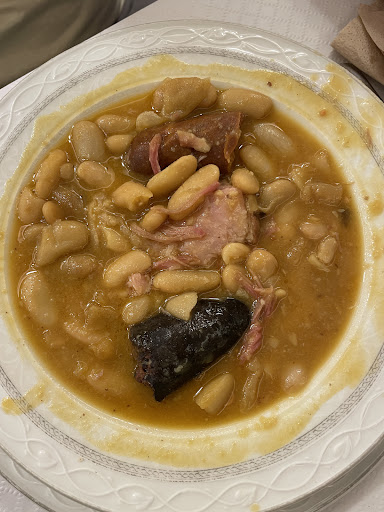 Read moreLeo las reseñas y no entiendo nada de nada sobre la comida. Es cierto que el local está reformado pero no es acogedor en absoluto pero... La estrella que le doy es única y exclusivamente por la camarera que me atendió. Una chica muy agradable, atenta y muy profesional algo difícil de encontrar y que podría estar en cualquier otro restaurante de calidad. La comida! Aquí empieza lo malo que no es lo único a destacar negativo. No recuerdo haber comido peor en mucho tiempo y no estoy exagerando. Una sopa de marisco insípida con gambas, algún pescado desmenuzado y un bote entero de kg de colorante. Se me ocurrió tocar una gamba y aún tengo los dedos naranjas. Increíble! La fabada horrible. Otro bote de colorante y un compango que le daba un sabor ácido y pésimo a ese caldo naranja extraño. Una faba dura, otra desecha, otra negra y otra en su punto. Hay que gastar más en un compango mejor! Un escalope de pollo empanado que se hacía bola pero en extremo. En la vida sabía que una pechuga empanada podría quedar así de seca. Intragable. Las patatas estaban fritas antes del servicio y ahí las tenían en una bandeja encima de la cocina porque estaban arrugadas que es señal de que se frieron hace mucho y estaban temperatura ambiente. Las croquetas! Bufff. O de esas congeladas que simulan el rebozado casero o una bechamel de polvos pero aquello casero nada. Horribles y con un toque dulce muy pero que muy extraño. La decoración del plato ya... Media hoja de lechuga iceberg cortada con la mano tirada en medio. De risa! Un postre en un vaso que estaba como una piedra de chocolate hecho con cobertura que madre mía. De vergüenza. De la cuenta mejor voy a decir que me cobraron a parte 1€ por pan que no tocó mi mesa. Ni el pan del menú ni otro alguno por el que tuviese que pagar 1€. Realmente el peor sitio donde recuerdo haber comido. Así que no comprendo esas críticas positivas de...