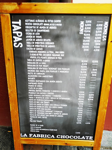 Febrero 2024 Este local sigue siendo un clásico y un valor seguro. La Fábrica de chocolate es un local en el cual o reservas o difícilmente encontrarás una mesa. Dispone de terraza. El personal es atento y amable, aconsejando a de a de las cantidades a pedir, como buen lo al asturiano sus raciones no son pequeñas. Pedimos media ración de queso Brie con membrillo, media de cecina, y una tosta de foie con jamón de jabugo. Ruego veías las fotos para haceros una idea de las cantidades. De hecho recuerdo que le pregunté a la camarera si lo solicitado en comanda era suficiente y me dijo que si nos parecía poco nos ponía otra media y me la cobraba como si fuera una entera, evidentemente no fue necesario pedir otra media.... El queso Brie no era de los más ricos que he comido, es difícil encontrar un buen Brie en restauración. La cecina estaba realmente buena. La tosta de foie, con abundante foie, buena también. La tarta de queso fue lo que nos decepcionó un poco, no estaba mala, entendedme, pero era insipidilla, sin mucho sabor a queso. Aún así, si uno quiere comer o cenar bien, y a un precio comedido, esta es una muy buena elección....¡¡¡¡Reservando antes para...