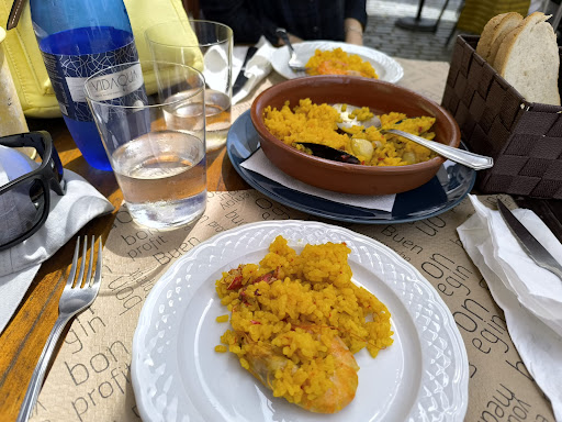 Al rato nos ponen un plato de paella para compartir (éramos dos), y no nos ponen platos. Tengo que levantarme a pedir los platos y nos los ponen.