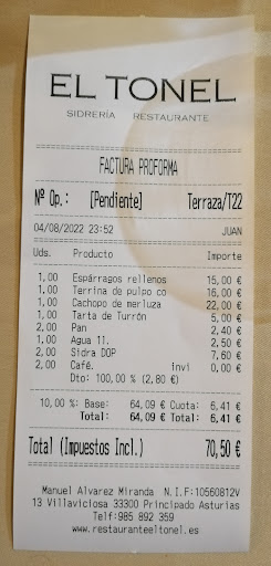He comido muchas veces en El Tonel y nunca me ha decepcionado. Lo considero el restaurante de referencia de Villaviciosa, por la cantidad de años que llevan abiertos y porque la calidad profesional nunca ha...