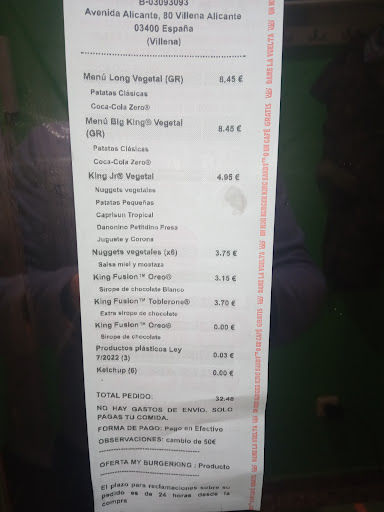 Read moreLamentablemente, la experiencia ha sido muy desagradable. La peor experiencia de mi vida en un restaurante BK, ya no solo el tiempo de espera, sino también la atención recibida del personal. Me hacen esperar hora y media para un pedido realizado por la APP de tres hamburguesas. Me dicen que no tardará, luego que les enseñe la foto de que había pedido porque no les aparecía en el ordenador. Se lo enseño y me dice que ya se encarga alguien de hacerlo. Sigo esperando y no me dan el pedido con lo que pregunto qué cuánto más me van a hacer esperar y me dicen que les vuelva a enseñar la aplicación. Me tenían esperando haciéndome creer que me lo estaban solucionando y nada. Me dicen que les muestre la APP y me vuelven a decir que no les ha llegado nada, que no estaría cobrado o que habría llegado a otro local. Les digo que no puede ser que me digan esto después de esperar tanto tiempo y más que les había enseñado una foto de que mi número de pedido estaba en su pantalla donde indica que mi pedido estaba en preparación. Al ver la foto se ponen a moverse y me dicen ahí si lo había preparado hace mucho tiempo. Si no les enseño la foto de que estaba mi pedido en preparación de su local ni me lo dan, ni me devuelven el dinero y me siguen haciendo esperar. Ni una DISCULPA. No puedo entender que encima ni un lo siento. Al final el pedido me lo he comido super frío y con mucho disgusto. En resumen, hora y media esperando para tres hamburguesas, atención pésima y la primera hoja de reclamación que pongo en mi vida, ya que ha sido indignate la situación vivida. No puede ser verdad que el trato haya sido...