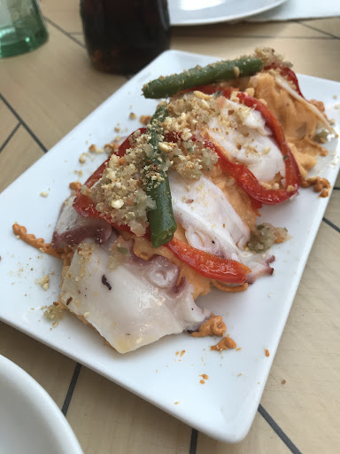 Tortilla de patatas de bolsa (me saqué un plástico de dentro de la boca).Patatas bravas cocinadas del otro día que no picaban.Rabo de cerdo pasadisimo.No dieron una con los bocadillos con el pan aún sin descongelar y el lomo frío de antesdeayer y todo hasta lo hubieramos pasado si no llega a ser por no una si no dos borderías del dueño de que nos dejó caer porque "íbamos lentos" en la cena cuando ellos tardaron como 15 minutos en tomarnos nota y porque se lo pedimos nosotros.