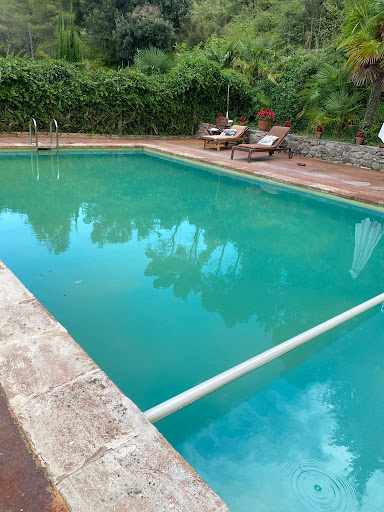 Después hay personas. Que al parecer viven aquí supongo.. porqué siempre estan y tienen dos perritas, muy majas y tal..pero si sabes que aquí vienen perros, y las tuyas no se llevan bien, tenlas controladas, porque yo n he podido bajar a los míos ni un di abajo pa estar sentados en los bancos del patio frontal, porque el único día que bajamos las dos perras se pusieron agresivas cn los nuestros, y a una la tuvimos que coger porque la dueña incapaz (de hecho su frase fue, coge q la mía por favor) en plan cógela tú. Que conste que yo no tengo nada en contra de los animales al contrario, pero estate atento. El sitio es chulo a tomar x culo de todo, pero le hace falta mucha reforma, hay grietas por muchos lados y muchísima dejadez, como en los espacios exteriores. La piscina sin más algo fría..pero bueno supongo que normal por estar en la montaña y le falta una limpieza también.