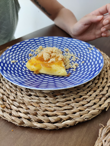 Estuvimos el 24 de Julio del 23, la verdad que fue todo un acierto, hicimos reserva previa ( recomiendo, el comedor es pequeño) nada más entrar nos atiende Aitor el maitre, nos acomoda en la mesa y nos muestra la carta y los menús que dispone, nos decantamos por el menú de mediodía ( 2 adultos y un niño), el primer plato es espectacular de sabor un calabacín relleno ( a modo de ensalada), por la parte del otro adulto un poke de salmón y el niño unas empanadillas ( gyozas )de carne y chimichurri, todo exquisito, los segundos platos pedimos unos macarrones con almejas y unos sándwiches de jamón, todo muy bien presentado y de sabor espectacular , de postres una tarta de manzana con helado de vainilla ( sorpresa, la tarta es en forma de Donuts ) con migas de galleta, una tarta de brownie con helado y una tarta de queso de oveja con migas de galleta, miy cremosa y con potencia de sabor, los 3 menús ( no incluye bebida ni postre) nos salió por 56€, el menú sólo son 11€.