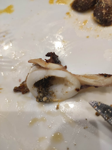 El arroz del senyoret que nos sirvieron fue un completo desastre. En lugar de la paleta de sabores delicados y el arroz tierno que esperábamos, nos encontramos con un plato que carecía completamente de sabor y tenía una textura agria. Cada bocado era una batalla para encontrar algo que valiera la pena saborear. El sabor agrio dominaba cada bocado, y el arroz estaba excesivamente cocido y pegajoso. Fue una gran desilusión darme cuenta de que este plato, que es considerado un clásico de la gastronomía local, había sido arruinado por completo.
