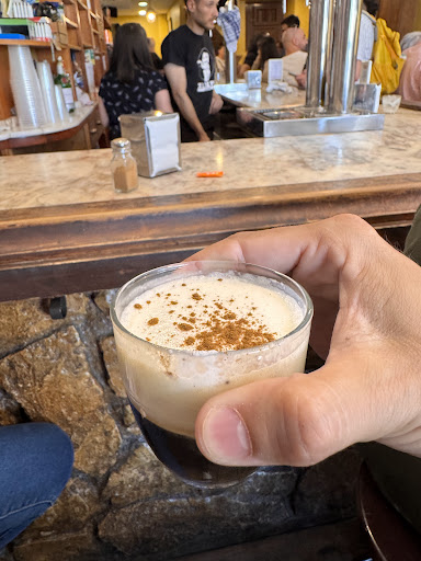 Read moreMe sigue encantando el café de este sitio, aunque el otro día me ocurrió algo que no entendí. Al preguntar cuánto tenía que pagar, la camarera añadió "en tu idioma 14,75". No lo pillé entonces y sigo sin entenderlo. Gente a la que se lo he comentado, se ha indignado llevándolo a la polémica castellano-euskera. Algo que me sorprendió. Me quedé con la sensación de haberla molestado en algo, pero no sé me ocurre de qué...