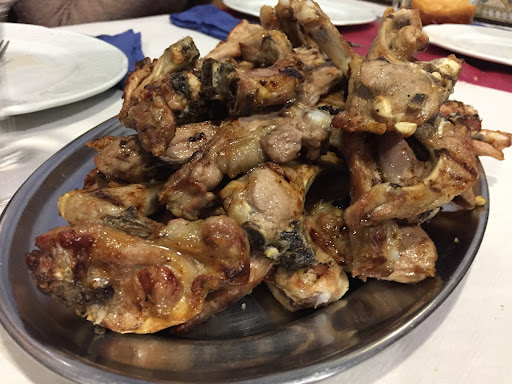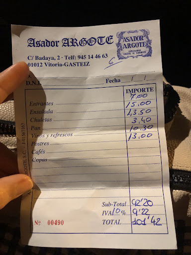 Pero los PRECIOS SON USURA! los precios de la carta vienen sin IVA te cobran cada precio por persona aunque pidas una ración para compartir. Por ejemplo. La carta decía: -chuletillas al Sarmiento 14,50€ sin iva. Pedimos una ración para compartir entre 3 y nos cobraron 43,50 sin iva por las chuletillas. Cuando los comidos de a 3 huesos de chuletillas por persona. La ensalada era una ensalada mixta. Contenía lechuga, tomate, cebolla, espárrago de bote, y atún, pedimos 1 ensalada para compartir entre 4 y cobraron 15€ sin iva por una ensalada COMÚN Y CORRIENTE, salada y con mucho vinagre. *LA CARTA NO ESPECIFICA QUE LOS PRECIOS SON INDIVIDUALES. el restaurante es pequeño, demasiado estrecho, incómodo de sentarse, niños gritando, todo el mundo amontonado, hacinamiento total. El PAN DURO Y MALO