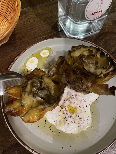 Read moreRestaurante ARIMA Situado casco mediaval con paredes de piedra que recuerdan a las antiguas tabernas. La música, relajante. Experiencia Culinaria: cocina mediterranea de raíz, pero con técnicas modernas. Intenta buscar sabores y textura a precio contenido. Atención muy amable y cariñosa, ayuda para seleccionar los platos, siempre te sientes atendido y buscando el picoteo y compartir. Su especialidad es la tortilla de patata. Cambian mucho de carta, comenzamos con una remolacha, con queso, pistacho y limón. Sabores diferentes refrescante rico De segundo un carpaccio con queso idiazabal. Lo que más me gusto, ya que los sabores aguantan el maridaje. Y por último tacos de cochinita pibil guacamole y cebolla morada. Mousse de chocolate sal aceite cacahuetes y miel. Todo rico, bien presentado, sabores diferentes con buen maridaje, las texturas intentan sorprender. Me gustó y no es caro. Un sitio para tener de referencia, problema lo pequeño que es que hace difícil la improvisación del momento, es necesario reservar...