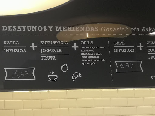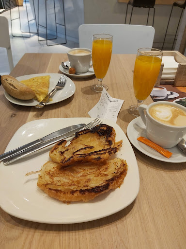 Ya he cambiado el número de estrellas de esta panadería algunas veces. Era una de mis preferidas y ahora es cada vez más decepcionante. Ahora en la de Salburua el zumo de naranja te sirven en un copo muy pequeño, casi un chopito ( ya lo hacían en el Boulevard). Ridículo! En meses han cambiado el tamaño de los vasos, con lo que te cobran por el desayuno... Me da la sensación de que los croissant a la plancha ( a primera hora de la mañana) son los del día anterior. Quien dice que esta es la mejor no ha viajado mucho... Antes me encantaba ir a desayunar a esta panadería, actualmente ya no tiene la misma calidad. Los desayunos me parecen bien normalitos. La manía horrorosa de sacar el café con leche antes de las tostadas, croissant a la plancha no me gusta. El café queda frío...y para una panadería degustación que hacen gala de su profesionalismo, me parece mal. La tostada nada de especial, tienen pocos panes a elegir, pero podrían tener más variedad de panes para las tostadas. El croissant (a veces queda muy quemado) sabroso y no lo aplastan como en algunas panaderías y eso me gusta. Te sirven el zumo de naranja en vasos distintos y deberían seguir un padrón ( algunos son muy pequeños) y pagas lo mismo y no parece zumo natural. El pan de aceite que antes me gustaba ahora lleva poco aceite y está muy seco. La tortilla no me gusta. No es la peor de Vitoria pero podría mejorar y volver a ser lo que era. El local es...