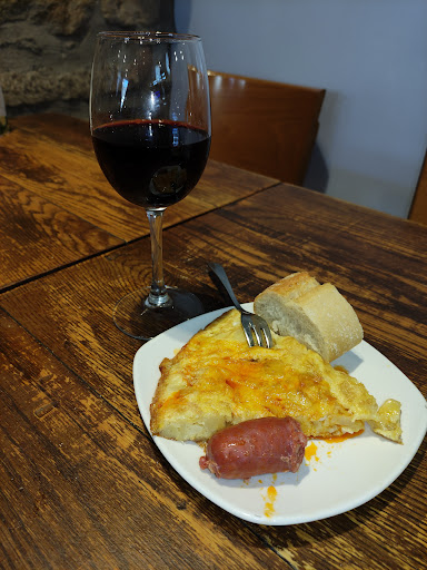 Read moreHistórico lugar en Vitoria Gasteiz. Un bar situado en la plaza más céntrica de la ciudad, uno de los lugares en los que más ambiente se mueve durante los fines de semana y los días de fiesta. Mítica es su tortilla de patata manchada, plato imprescindible para cualquier visita fiestera a nuestra ciudad. Hay que advertir que es un local pequeño que se llena enseguida y que es necesario mantener la calma y la paciencia al ir a pedir a la barra. Con el buen tiempo, igual que el resto de bares de la plaza, despliega una amplia terraza que siempre se quedará pequeña cuando se va a buscar mesa. Cómo aspecto negativo, al igual que la mayoría de los locales situados en la parte histórica de la ciudad, su ausencia de accesibilidad. No dispone de baños apropiados ni ningún tramo de la barra a...