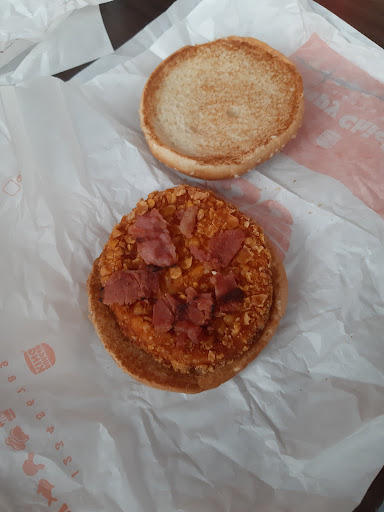 Burger Que sirven en mesa cosa que no había visto lo cual parece bueno pero al final se resumen en mesas sucias y un pobre muchacho deambulando con tu bandeja hasta que te encuentra.