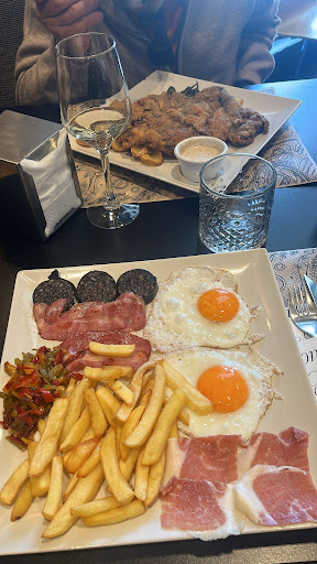 La comida espectacular un cachopo delicioso y un plato de huevos muy completo para repetir ,el postre muy muy bueno
