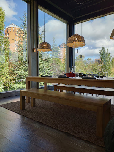 El ambiente del restaurante es muy agradable, con un diseño amplio y bien cuidado, y grandes ventanales que iluminan el espacio. Es un lugar ideal para familias, ya que disponen de tronas para bebés.