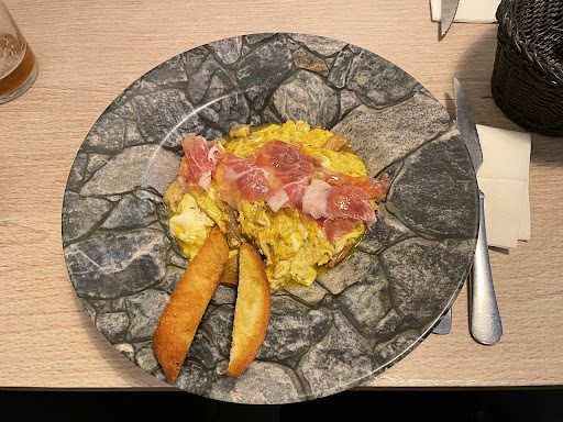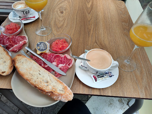 Read moreBsr pequeño pero acogedor y una gran terraza peatonal, con pergola cerrada y bastante cómoda. El personal muy profesional a la hora de tratarte y servirte. Tienes bizcochos y pintxos para tomar lo cual completa su oferta. De todos ellos, destaco el bocadillo de jamón y tomate, si, es uno de los más simples pero hace muucho tiempo que no saboreo el jamón en un pintxo, muchos ponen jamones de tan poca calidad, que apenas puedes saborearlo. Lo recomiendo. Un lugar para repetir sin duda, zona tranquila a pesar de estar al lado...