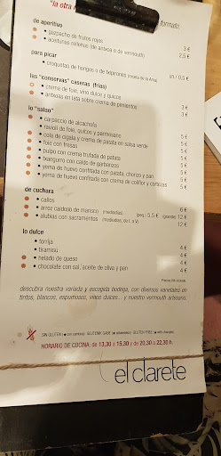 Read moreFui a comer con mi pareja que había estado ya varias veces pero yo ninguna, y la verdad es que jamas escuche a nadie hablar mal de este restaurante. Me parecio comida muy sencilla en algunos platos y escasa de sabor en otros. Mi pareja que había estado otras veces me comentó que las otras veces que había estado fue de 10 y que esta vez había bajado mucho el nivel. Por poner dos ejemplos los platos de carne y pescado fueron un taco de merluza a la plancha acompañado por un puré de brócoli y la carne fue cordero desmigado metido en un molde rectangular acompañado de una compota de manzana, nada del otro mundo vamos. Si que había un par de platos ricos como los chipirones en su tinta con espuma de patata y el ravioli, pero luego hubo varios como los guisantes o el carpaccio de bacalao que la mitad de los comensales los dejaron. En las últimas fechas habíamos visitado los restaurantes Zaldiaran y Laua para probar sus menús degustacion y después de haber probado ayer el de El Clarete he de decir que para mi está muy lejos de estos dos en cuanto a sabor,calidad y presentacion. Espero que sea una crítica constructiva y vuelvan a ser lo que todo el mundo...