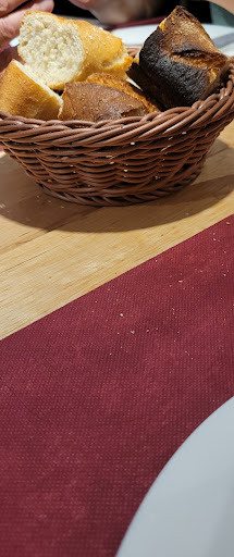 Nos trajo pan y estaba quemado, se lo comentamos y la respuesta del camarero fue "a alguna gente le gusta así y depende de la temperatura del horno" (en otros sitios te lo cambiarían o se disculparían). Adjunto foto del pan.