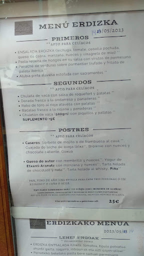 Read moreYa hay muchas reseñas explicando lo rico que está todo lo buena que está la ensalada, OK, vamos con lo malo. A ver, gerentes del local, mesas pequeñas, platos pequeños. No me pongas una mesa pequeña y un plato del tamaño de una rueda de moto tío que no cabe nada. El pan sin gluten es la típica bagguette de 'Betina' cosa que está bien porque va acorde con la calidad del pan con gluten que sirven en los menús, que es lamentable, parece 'pan de ayer'. Una botella de vino de toda la vida es para 2 personas, qué es eso de una botella por cada 3. Estaría bien tener al menos UNA opción vegetariana a escoger en el menú, si no recuerdo mal la ensalada es vegetariana pero de segundo solo tienes carne o pescado. [Este es personal] La salsa de queso Idiazabal está bastante más rica si la proporción no es 90% leche/nata u 10% queso, pero bueno, eso...