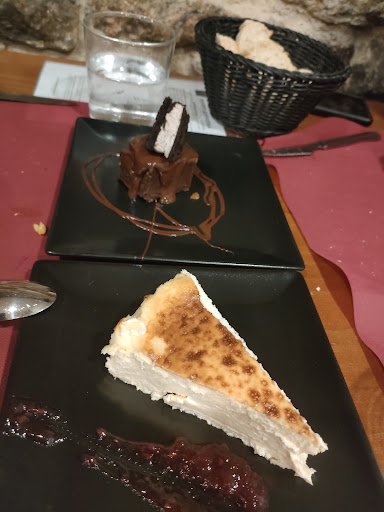 Somos una pareja de riojanos. Una logroñesa de pura cepa y un hormillés de puro ladrillo. Fuimos recomendados por un natural de Vitoria y salimos gratamente contentos, muy llenos y con una gran necesidad de tomar siesta tras colosal festín. Pedimos de primero Risotto riojano y una ensalada (a veces somos sanitos). De segundo una chuleta y mi maravillosa pareja se enfrentó a un plato de chuletón de 600 gramos acompañado de pimientos y patatas del que solo quedó hueso. Estuvo a punto de coger este hueso con las manos y succionar la grasa. Pero está feo… De postre compartimos tarta de queso y brownie de chocolate caseros. Fui rápida y pude probarlos, muy ricos. Había una personita de año y medio al lado comiéndose un helado de lacasitos. Parecía que le estaba gustando por la manera tan rápida de comerlo, aunque también podría ser por miedo a que se lo quitasen. Le entiendo, yo también tengo ese temor… En resumen, disfrutamos mucho de la comida. Casera y abundante.Los camareros fueron muy top. Seguro...