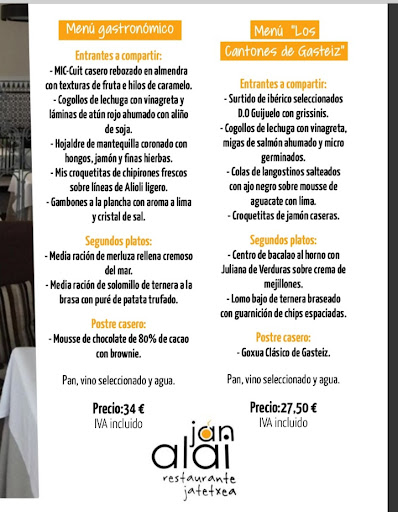 I went to eat in February 2017 in a restaurant called Jan Alai. I went with a colleague of mine and we had a 12€ menu. It is a small restaurant in the down town of Vitoria, which is managed by a friendly couple and the restaurant itself is very comfortable, well-lit and very clean.