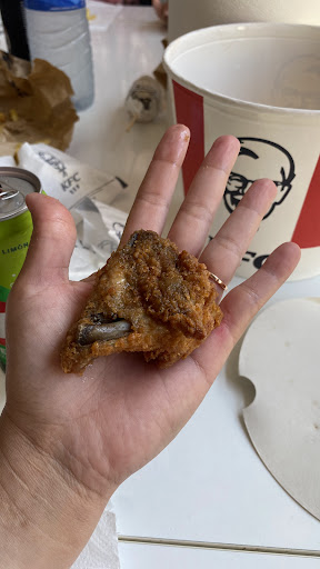 La comida, pollo en muchas variedades, para mi, lo mejor, las tiras, y el pollo rebozado crujiente, el original me parece que queda excesivamente grasiento y mucho menos apetecible, también estan muy buenos los rocks, a mi hijo le gustaban y eso que son picantes.