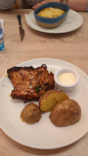 Read moreUna pena, fuimos por el día de la madre y lo único que puedo valorar positivo es que las hamburguesas le gustaron a mis hijos… nos sacaron una ración de croquetas, que una de ellas era una tercera parte del tamaño de las otras cinco y reventada hecha una papilla, nos la cambiaron al protestar, por casi ocho euros la ración… como para perder una croqueta, las raciones de comida escasas, el cerdo a la brasa, cuatro trocitos sobre unas pocas patatas panadera… y la lasaña bañada en aceite y poca cantidad, encima no nos ofrecieron pan, que lo reclamamos cuando nos trajeron los platos, nos lo trajeron cuando ya habíamos terminado y encima no nos advirtieron de que cada panecillo nos costaba 1,50€ adicionales… que al decirle a la camarera cuando nos cobró, nos dijo con poca amabilidad que ese era el precio por panecillo y es lo que hay…. Al preguntarle al que parecía el encargado, me dio la razón de que no había sido apropiado el servicio recibido al respecto y se ofreció a devolverme el dinero del panecillo… para mi tarde… en fin, que ni recomendamos ni volveremos, que por 76,90€ por esas cinco cosas mas agua una Coca Cola y dos cañas, por que postre ya no quisimos probar, creo que hay otras opciones...