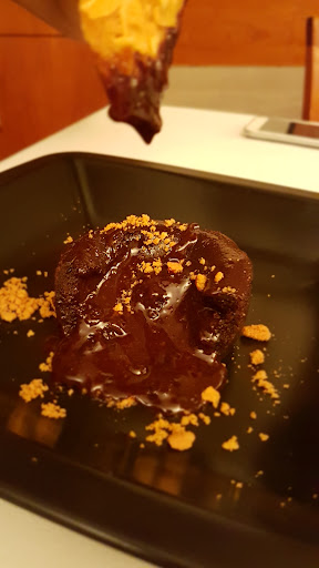 Postres caseros : natillas , brounie de chocolate, cuajada con miel