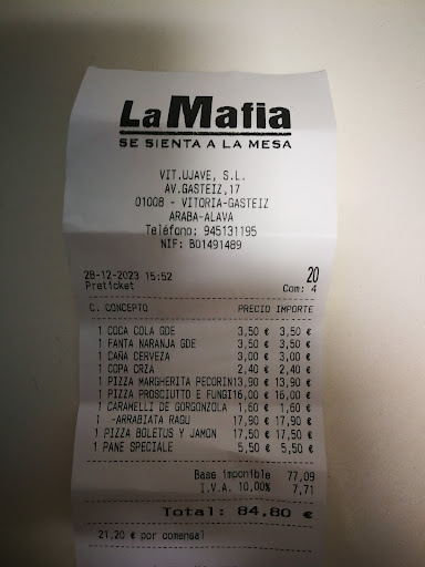 La relación calidad-precio nos pareció buena, aunque quizás algunos platos podrían ser un poco más económicos. En general, la experiencia fue muy positiva y sin duda volveremos a pedir a domicilio a La Mafia en el futuro.