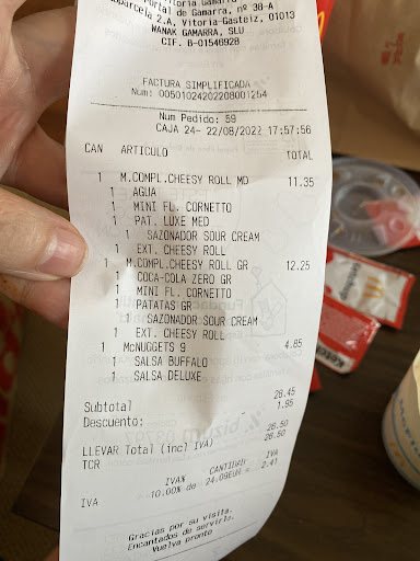 Eine sehr positive Erfahrung im McDonalds Spanien. 02.09.2024 Zudem deutlich günstiger...