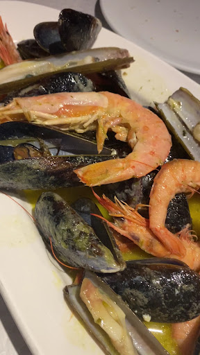 Calidad precio correcto. Pedimos menú fin de semana para 2 por 35€ por comensal, café y bebidas aparte. La calidad de la comida es correcta para el precio. Puntos a destacar: La mariscada tuvo dos fallos importantes, los mejillones y Navàs estaban demasiado hechos. Mejillones empequeñecidos y las navajas chiclosas. El pulpo se deshacía y el jamón asado estaba muy bueno. La chuleta con patatas y pimientos de padron también estaban buenos, la chuleta con saborcito a carbón. La tarta de santiguo jugosa y el ambiente muy rica. Demasiado tiempo de espera entre platos. El café tardaron más de 20 minutos en servir. También quiero destacar que la chica de pelo blanco que está en barra es bastante seca y desagradable. No brota ni un ápice de simpatía en su rostro ni en su forma de...