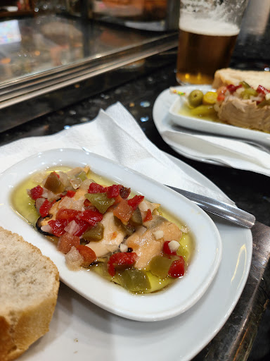 Popped in for a few tapas on a Sunday night. Neighbourhood bar. Nice friendly atmosphere. The kitchen was closed, but enough food to choice from on the bar. I think the pinxos had been around for a few hours, however, still fresh and tasted great. The bar man gave us a plate of crunchy pork (scratchings!) It was delicious. I'm glad we tried it as I never would...