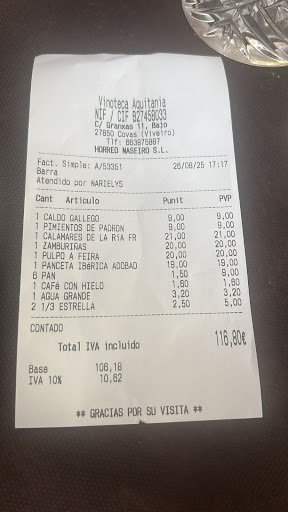 Read moreNo todo es comer bien. El encargado, dueño, o lo que fuera, debería reciclarse un poco en atención a clientes y saber estar. Después de una espera para que nos atendieran, el susodicho se mostró enfadado por pedir poco, cuando lo normal es que, cuando no conoces las cantidades ni su calidad, esperes a ver lo que traen pensando que en caso de quedarnos con hambre pedir alguna ración más. Después de una larga espera, nos trajeron la comida. Hay que decir que la calidad y elaboración fue exquisita pero la cantidad era más bien escasa. Después de terminar las raciones que habíamos pedido, llamamos al encargado para pedir un par de raciones más, y la respuesta fue curiosa: “iban a tardar como media hora y no se podían saltar las mesas que ya nos habían avisado de que habíamos pedido poco y que una vez pedido ya que no se podía pedir más”. Nunca nos avisó de este hecho, únicamente fue un movimiento de cabeza al dar la vuelta, como expresando su malestar por pedir poco. Es muy lamentable que todavía no se den cuenta algunos propietarios/encargados que no hay mejor valoración que comer bien y sentirse a gusto. Si ven mis valoraciones no suelo ser demasiado crítico, porque entiendo que es su trabajo y de ello viven, pero no todo vale por muy buen...