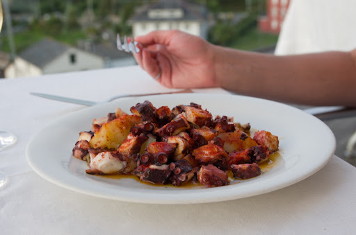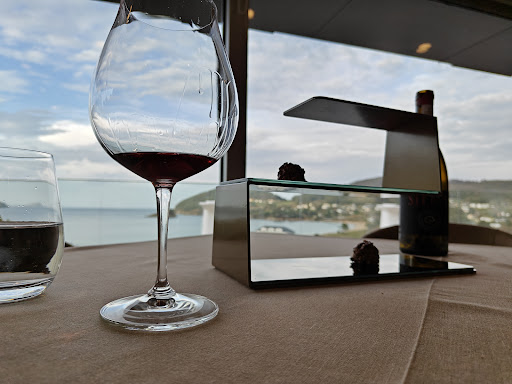 The only thing positive about this place is the view from the terrasse. The entrees were fair. The pulpo was ok, but does not compare to the other we had Galicia. The main courses were very bad. The rice was not even well cooked, there was crunchy grains. Even if this is a easy meal solution if you are staying at the hotel, take your car and go to the city to get a decent meal. More than 100 euros with a bottle of white wine and meals for 2 people. Very...