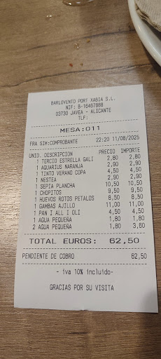 Read moreOur first visit today and it definitely won’t be the last. It has Inside and outside dining looking across the bay of Javea offering wonderful relaxed views. The tapas and mixed dishes of fish and various selections of meat were fantastic, served by friendly and helpful staff made our afternoon. The decor inside was fresh, clean and welcoming. If you want favourable prices Bar Lovento is the place of...