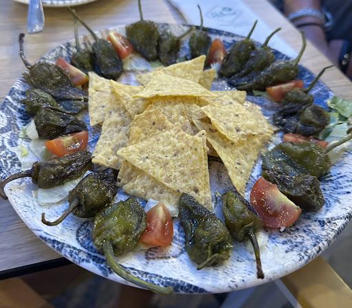 We also had padron peppers , these had been deep fried and were over cooked , soggy and just tasted of oil and for some reason were served with nacho chips.