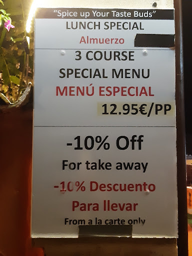 Read moreNice enough food, though the garlic naan was disappointing and the pickle tray was the smallest I have seen Although there was a board outside advertising a menú del día, we were told that this was not available on the evening on which we went. The service was very poor: not just slow, but with several errors in the order. I eventually was served my starter after the main course had arrived. We were not offered either coffee or dessert. We ate indoors, but cigarette smoke from the terrace filtered inside through the open window, polluting the air An overrated restaurant, with not great value for money in comparison with its competitors. Overall, an experience not to be repeated, so we will not...