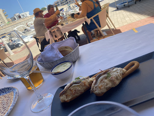 Read moreEl sitio es muy agradable en los muelles del canal de la Fontana. Hemos estado en muchas ocasiones (este mes es la segunda). La atención del personal es excelente, hay alguna chica especialmente eficiente que vive lo que hace. Se puede comer en interior climatizado o en terraza, cubierta o descubierta que sobre las 15 ya está a la sobra. Hoy fuera con brisa agradable. Agosto 2020: comida familiar para 6 personas. Hemos pedido el menú casolà, compartiendo los entrantes. Cocas, típicas de la comarca, buenas, caseras, nada que objetar. Las croquetas bien, los boquerones excelentes igual que la ensalada. Los segundos: Arroz "a banda" bastante bueno, brocheta de carne perfecta y el pescado con ajetes bueno (apenas un poco pasado de punto). Postres el carpaccio de piña con helado y la tarta con almendra y dulce de leche muy buenos. Para beber unas cervezas y vermouth antes de comer, agua y rosado valenciano de variedad Bobal sorprendente y cafés para terminar. Precio medio del cubierto 26'5 € por persona. Siempre estamos dispuestos a volver. Admiten mascotas...