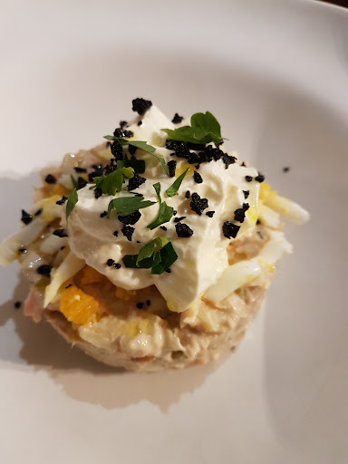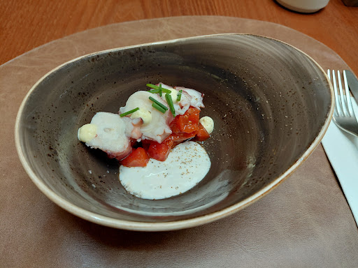 Read moreFantastic. One of the best lunches we have had in Spain/anywhere. Lovely staff, interesting interior and exceptional food. We had the €18 lunch which included three tapas starters. Each plate was faultless. Interesting modern takes on traditional Spanish combination (for example tuna and almonds but with an orange flavoured humus or meltingly soft pork loin with sweet onions and olive tapenade). Main was a shared rice with cod and cauliflower and again was spot on. Puddings were included but were not the half hearted things you normally get in a dia menu. We had Baclava with yoghurt ice cream and a lemon creme with ginger biscuits and green tea ice...