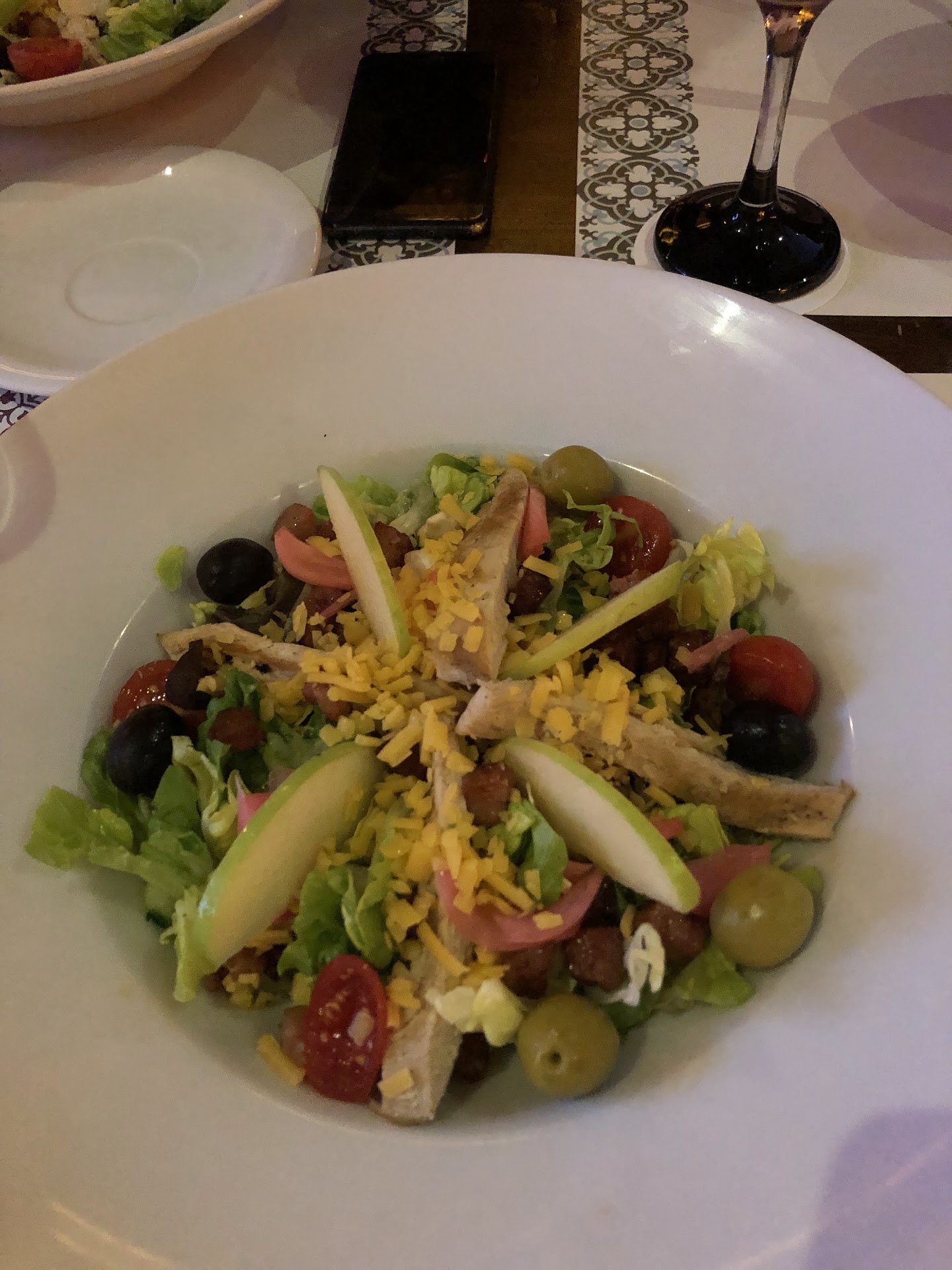 Despite having no shrimp allergy and having consumed shrimp the day before without issue (a regular part of my diet), I had an adverse reaction to the garlic shrimp tapas. My entire body began itching, resembling a widespread bee sting. Additionally, the club sandwich, which was previously served differently during my first visit, was unsatisfactory. This time, it consisted of grilled sandwiches with chicken, melted cheese, bacon, and a Caesar salad on the side—not a traditional club sandwich.