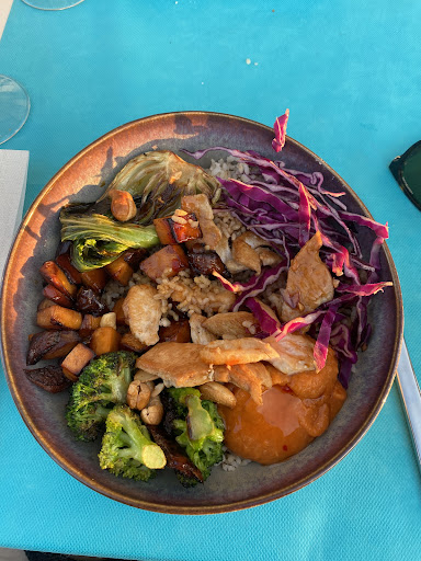 Read moreWe’ve had breakfast and lunch here and we all loved it! My vegan breakfast was delicious with scrambled tofu. For lunch they happily accommodated all our requests and dietary requirements, they veganized one of the salads for me (even though there were other vegan options!). The food was fresh and so tasty. We sat on the terrace with a beautiful view of the mountains. Inside is just as lovely with incredible artwork. We’ll be back...