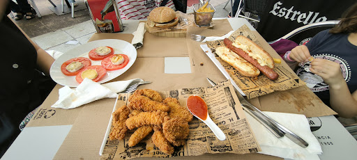 Casi cincuenta minutos para servir una "ensalada de tomate y queso", una hamburguesa con queso, un perrito caliente con queso, y unos fingers de pollo.