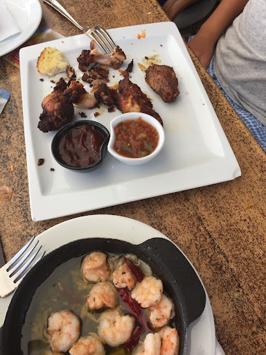 This is our last day of a 7 day break in Lanzarote. I tend to avoid beachfront restaurants as I feel you pay for the view more than the food- however I stand corrected. Without doubt this is the best lunch we've had the whole time we've been here ( and that includes the caves). We are real foodies and these dishes were a highlight: Cold seafood cocktail with roasted avocado cream Garlic Prawn Salad - a sight for the eyes and taste buds, despite the dreary name ( hopefully I can upload in photos below) Hot large Canarian assortment pot of seafood ( make sure you ask for bread as you won't let those flavours leave the table unmopped up!) I had an Irish coffee then dived into some local deserts: Canary Island Polvito - so this is like a very light trifle with lychee and meringue flavours, Canary Island Biemisabe - I feel bad giving the ingredients as the taste explosion was better than the description - it's an almond and egg custard with ice-cream: like a fig roll pudding mixed with summer vibes. Service is typically slow but waiting staff not too pissed off at you going up to them to remind them you're still waiting for food or drink orders. In fairness, service is 20% better than we've experienced across the whole island, (which is generally poor to the point of negligence!)..and the decor - bathrooms are a real hit. So in summary; amazing view, great food, lovely decor and marginally better attentiveness when eating here! An all round winner in Lanzarote, and an easy 5 star...