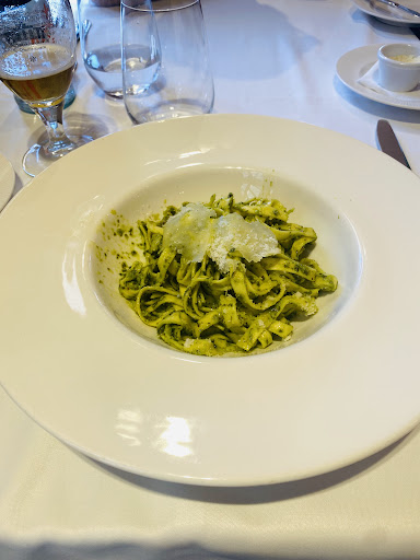 The lasagna was just OK: more cheese than tomato. The cannolo was beautifully presented, but the pastry dough was not fresh and had lost all its crunchiness. I found that really disappointing: surely that is the #1 thing to get right when you put cannolo on your menu? If not for that it would have been a really nice dessert. I also asked what came with the panna cotta as it usually comes with some sauce or fruit. Instead of answering my question, the waiter explained that panna cotta is a Spanish dessert (!) a bit like flan (!!). When I tried to ask again, he said "wait!", walked off, and came back with an actual panna cotta. I found this a really strange experience.