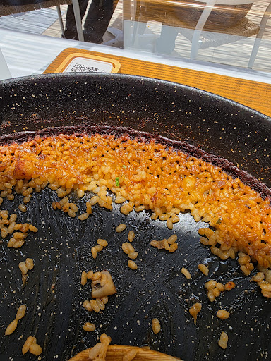 Disappointing. Really lovely setting but the experience we had and food didn't match the views. It was a warm welcome and although we were trying to speak Spanish they accommodated in talking English which was kind of them. The balcony area was full so we were sat inside which was quieter. We were tucked in the corner of an almost empty room a way from the windows with views. We ordered a paella. Which took some time, but we didnt mind. When it came it was dry, burnt and rice under cooked. I would say however the fish and chicken was very well cooked and tasty. When we complained about the rice being underboiled and burnt they said thats how the Spainish like it. During the long wait and even when eating we were never asked if we wanted more drinks, if the food was good etc. Waited a long time for the table to be cleared and get the check. We ended up walking to the till to pay as we didn't want to wait any longer. The restaurant wasnt busy at this time. Just got a bit of a anti tourist vibe from our experience which is a great shame. For around €25 per person for a shared burnt paella we left feeling very...
