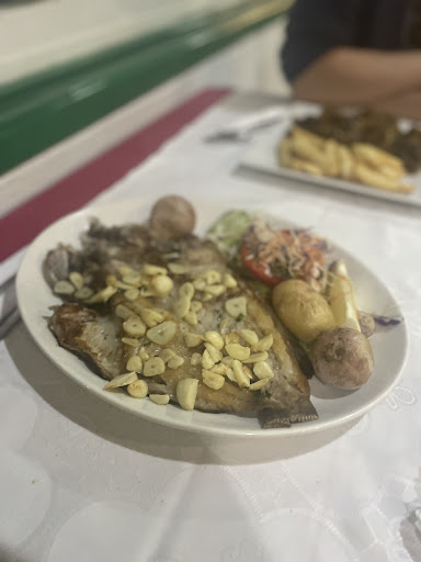We had fish off the day which was bone on with tons of garlic. If you don’t like bones, get the other ones. But we loved it.
